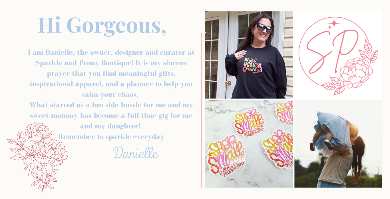 At Sparkle and Peony, our mission is to create stationery and gifts that inspirte joy, reflect personal style, and make everyday moments meaningful. From chic notepads, notebooks and planners that bring elegance to your desk, to handmade and thoughtfully designed greeting cards for every occasion, our products are curated and designed to celebrate life's beauty and simplicity.