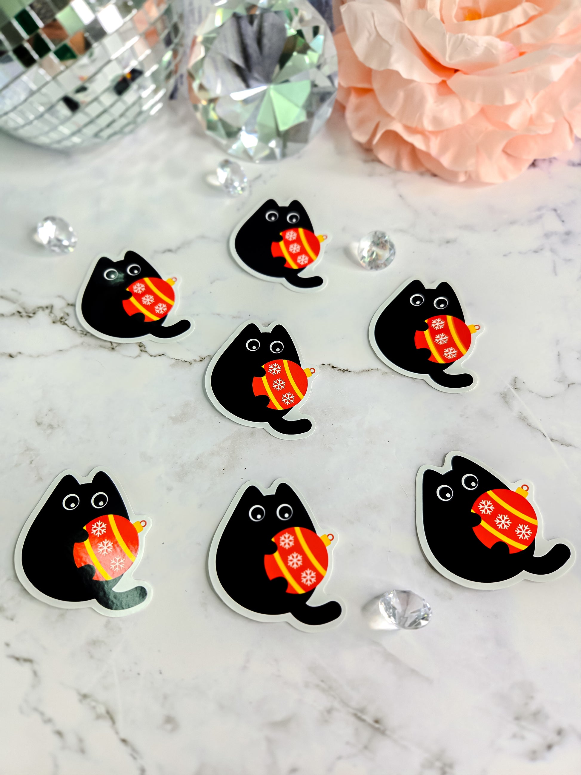 Kitty loves Christmas ornaments sticker