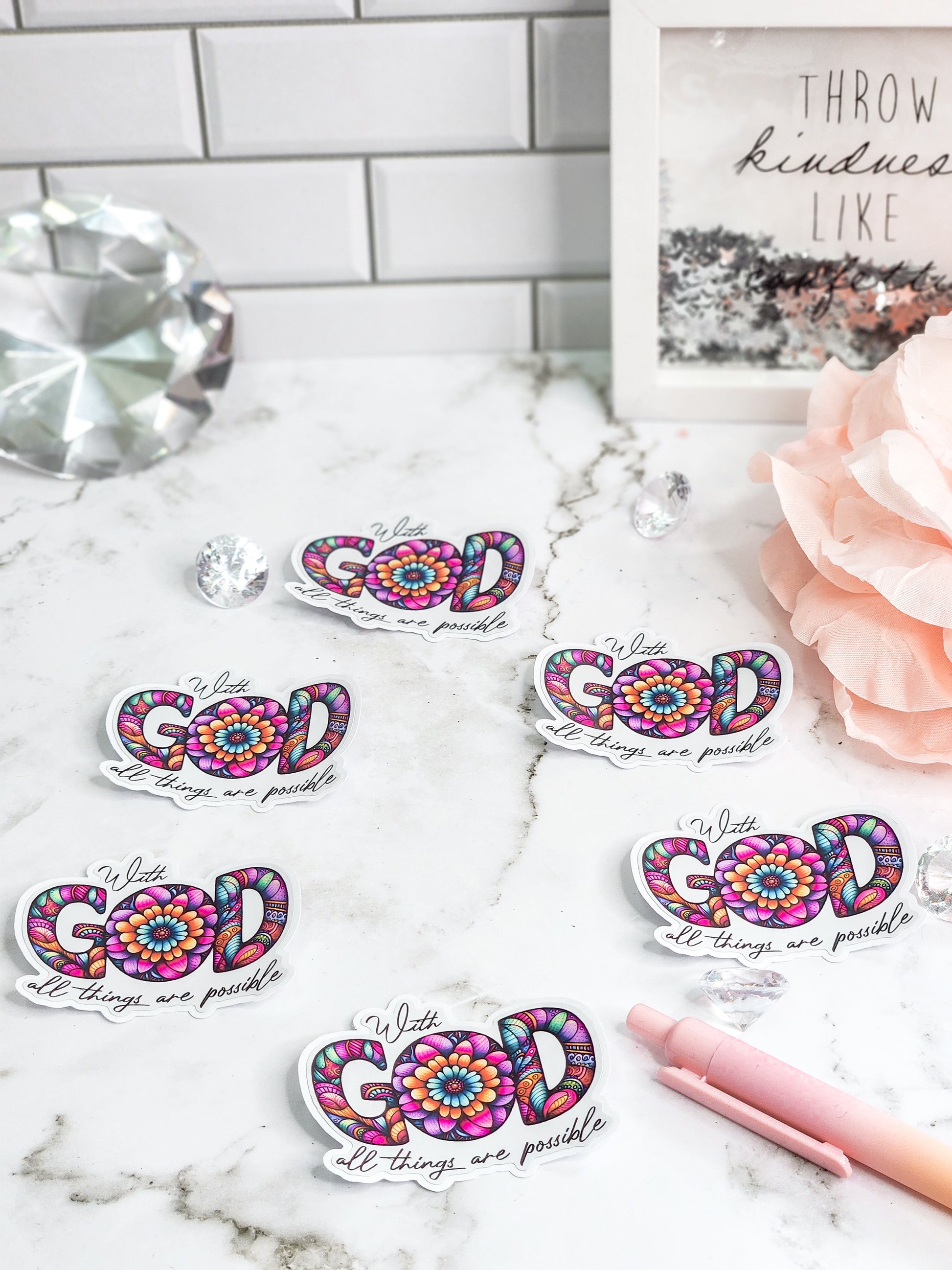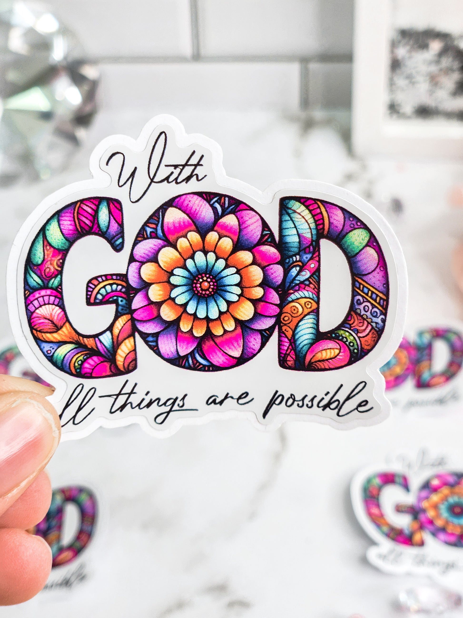 With God all things are possible is a cute stickers that you can use in your planner, to decorate your notebooks, laptops, cellphones, tumblers and more! Die cut stickers are designed by me in my WV home studio and cut using my silhouette cutting system!